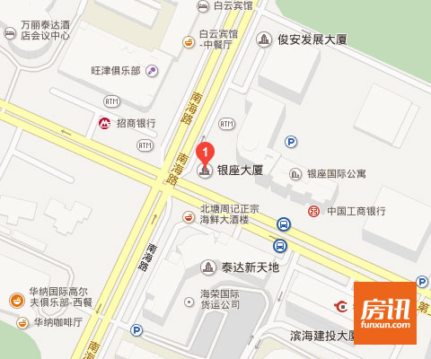 银行:天津农商银行滨海支行、农行新天地支行、工行银座大厦支行、工行宏达支行、天津市滨海农村商业银行营业部、中行芳林园分理处、天津中国农业银行港保税区分行新天地分理处、天津农商银行ATM、邮政储蓄银行天津开发区支行、农行第三大街支行